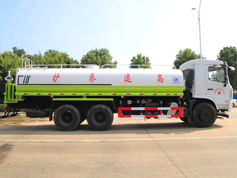 東風后雙橋灑水車,可裝水20噸,可配康明斯230馬力發動機或玉柴245馬力發動機,大同10檔變速箱,4350+1350mm軸距,11.00R20鋼絲胎,原裝空調,電動玻璃,中控鎖,氣囊座椅。車輛實物圖片如下: