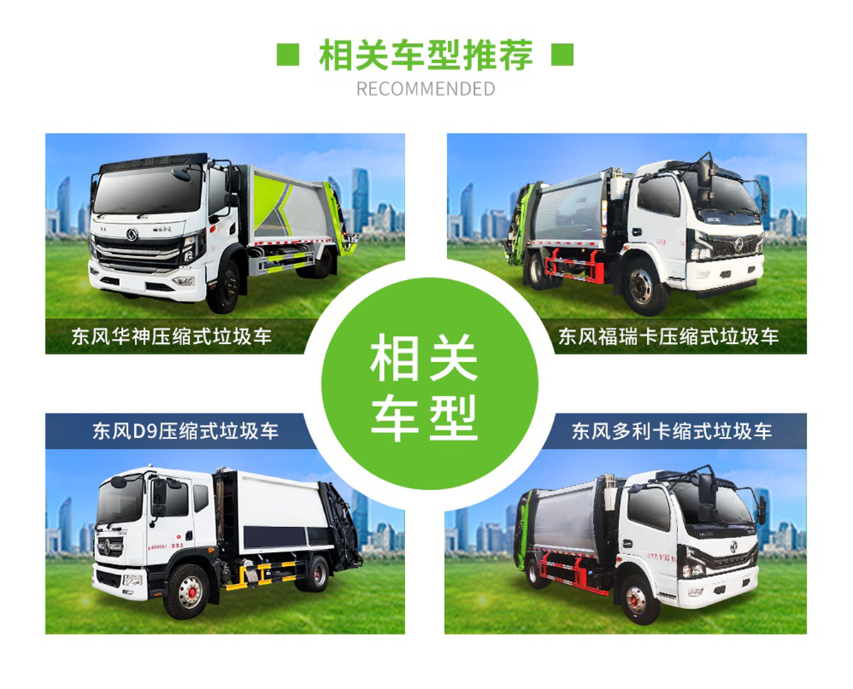 上裝配置:廂體有效容積約4立方米,側裝掛桶提升機構,可定制提升120L或240L垃圾桶,內帶全推板,尾部液壓開啟。